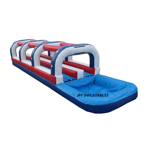 ブロワー付きダブルレーンインフレータブルウォータースリップnスライド、USAスタイルのウォータースリップとプール付きスライド